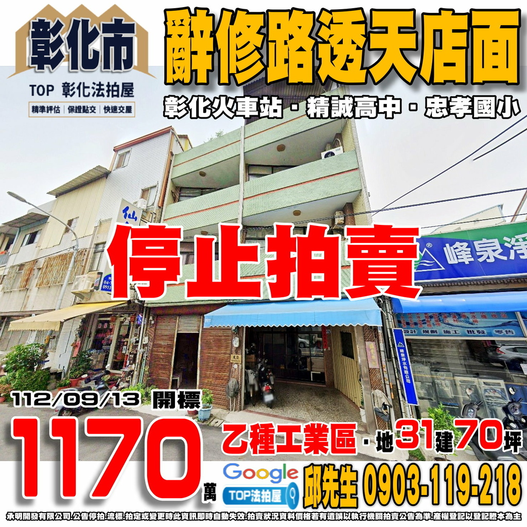 彰化法拍屋》辭修路透天店面|近彰化火車站