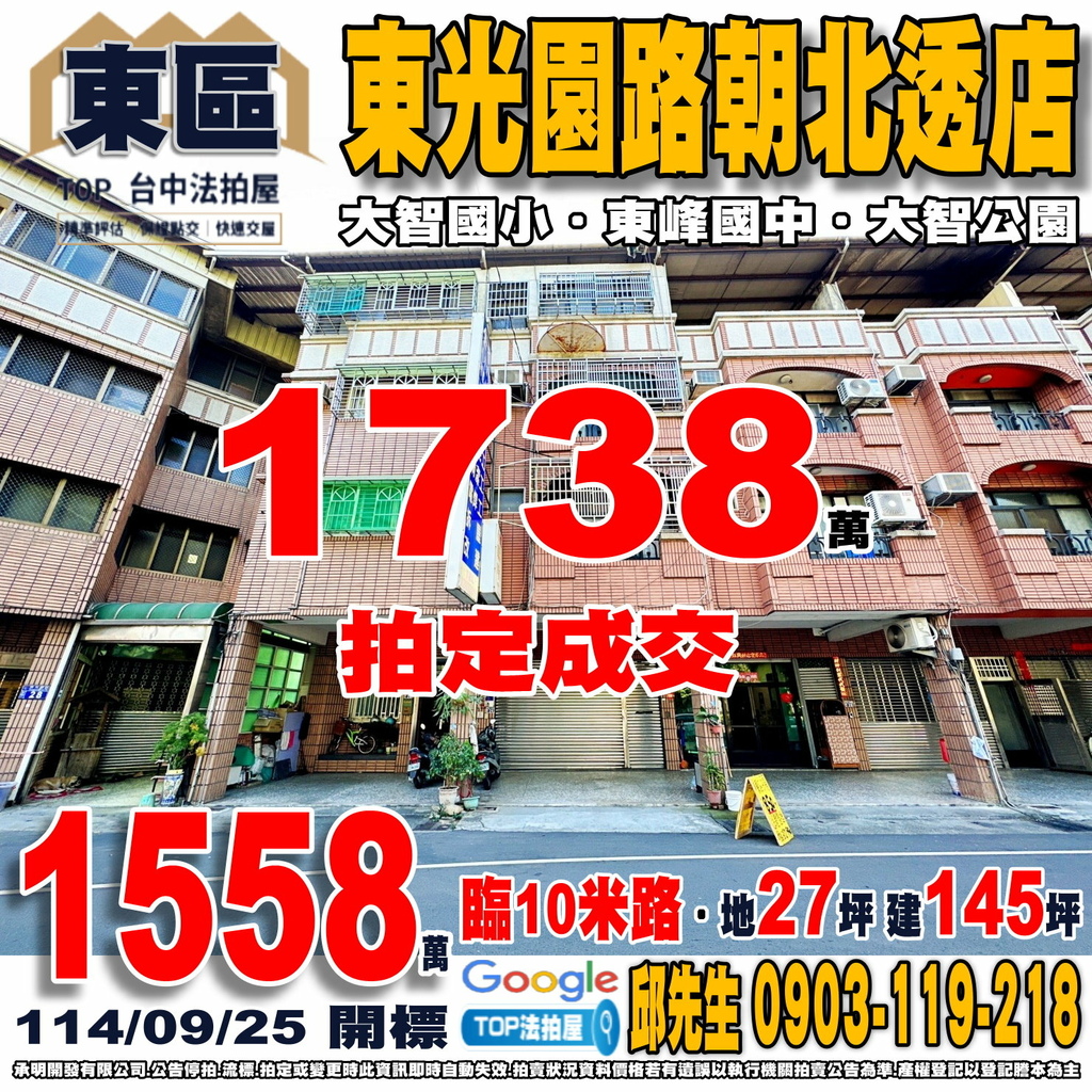 台中法拍屋》東光園路朝北透店|臨10米路|大智國小