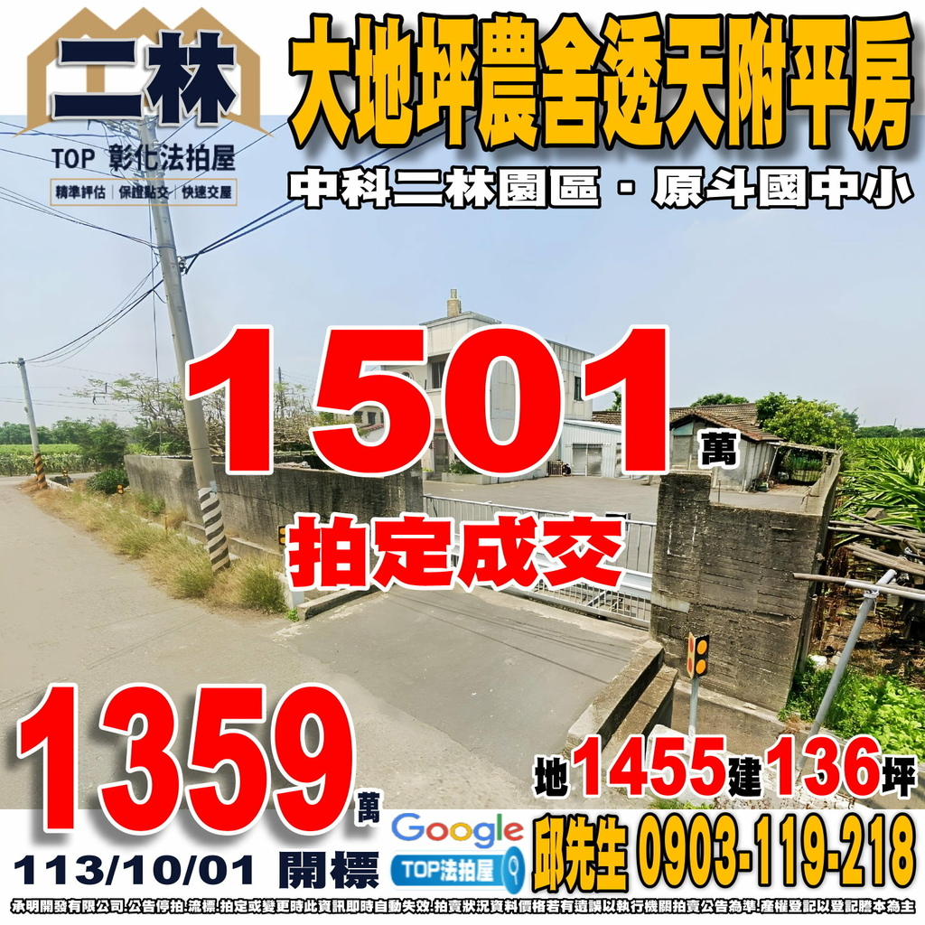 彰化法拍屋》大地坪農舍透天附平房|中科二林園區