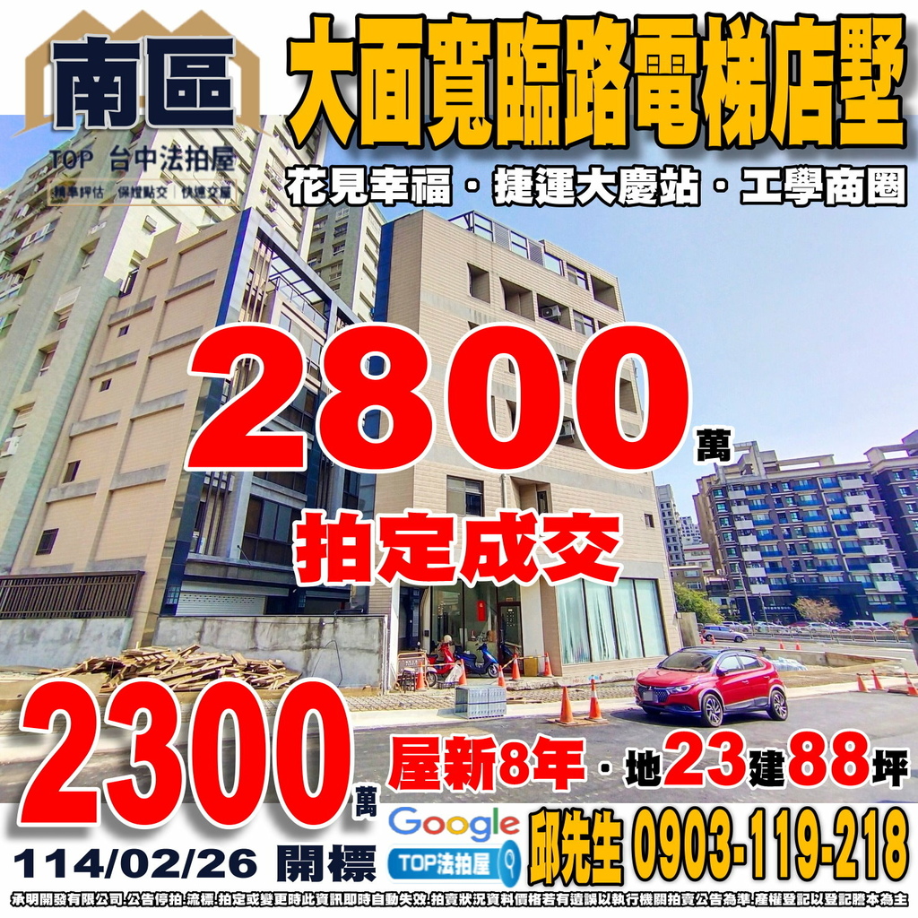 台中法拍屋》大面寬臨路電梯店墅|花見幸福|屋新8年|近捷運大慶站