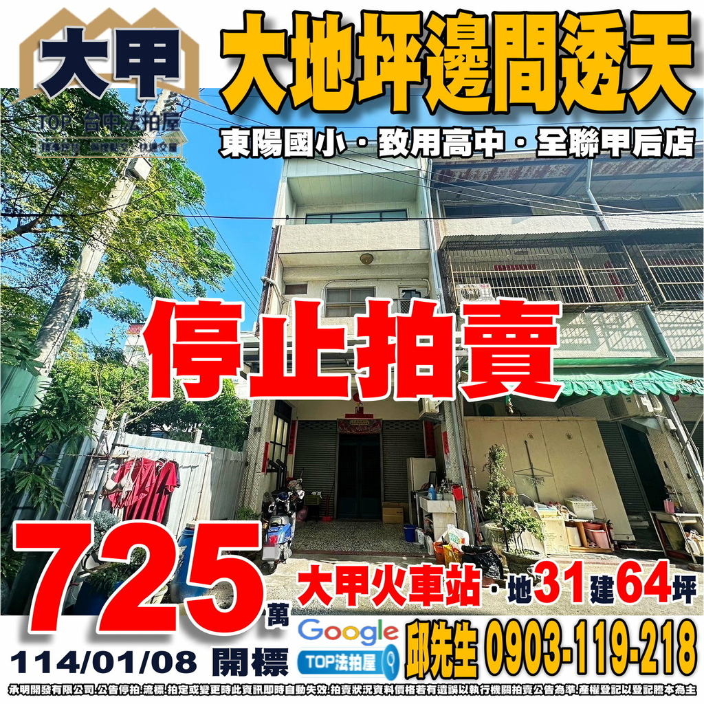 台中法拍屋》大地坪邊間透天|近致用高中