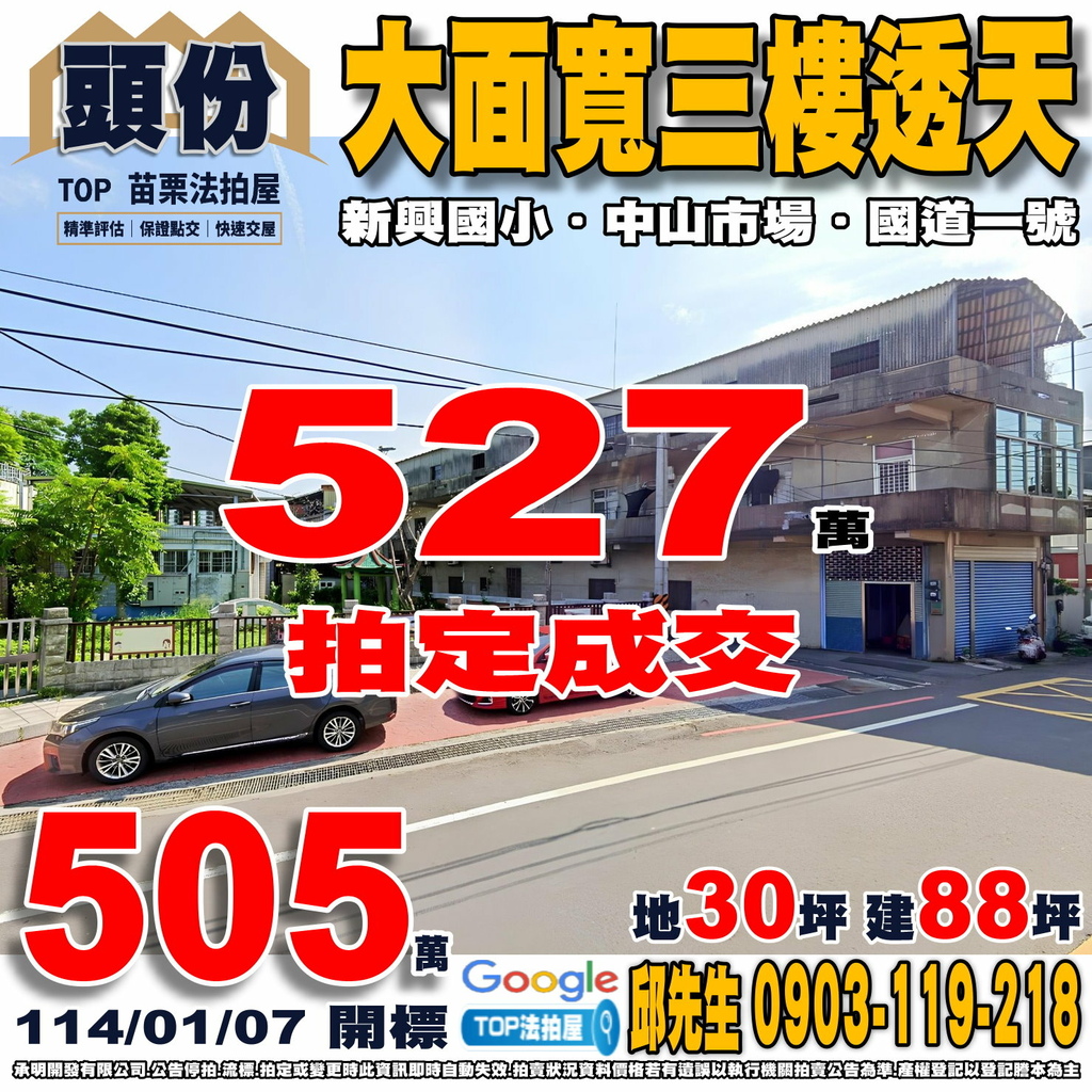 苗栗法拍屋》大面寬三樓透天|新興國小旁