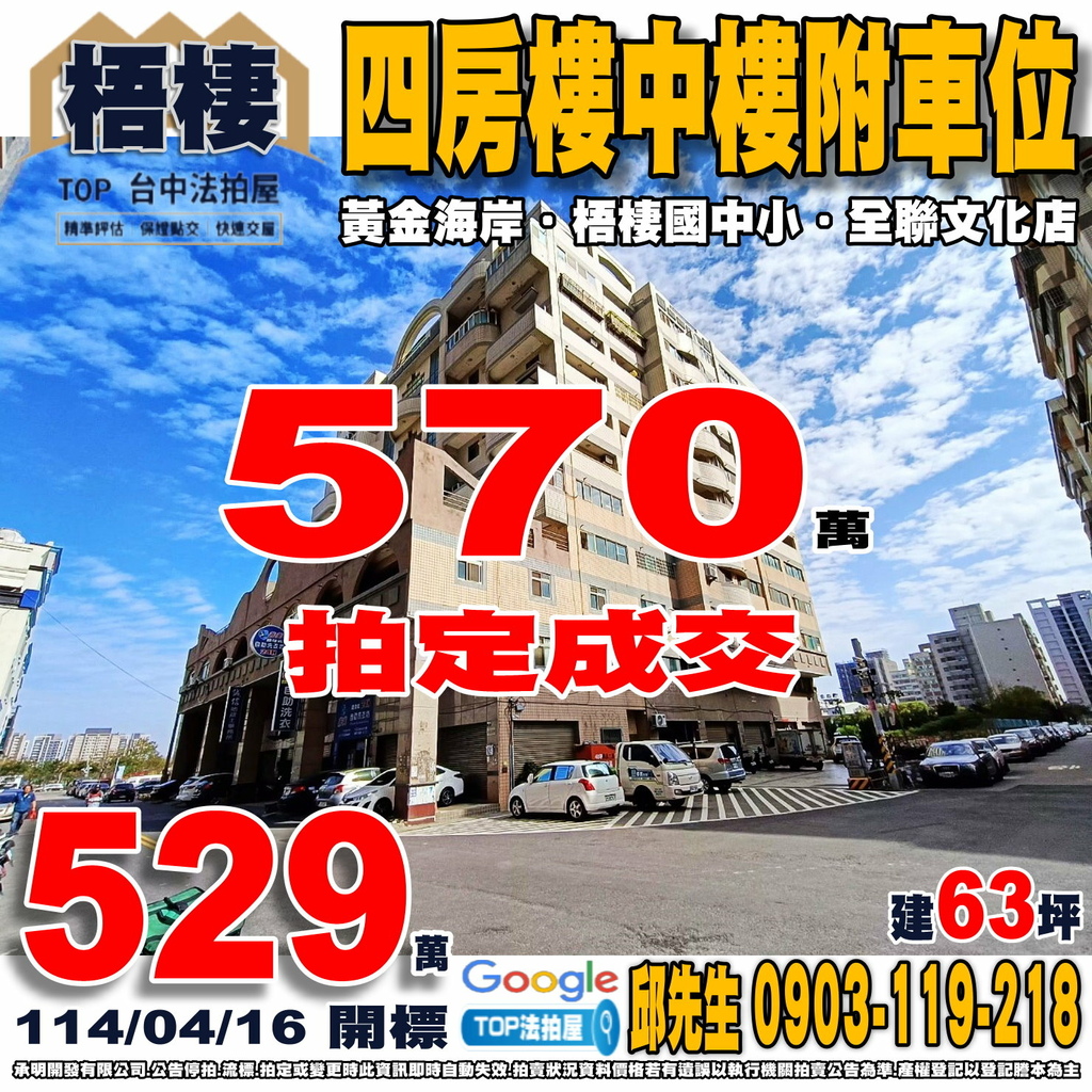 台中法拍屋》四房樓中樓附車位|黃金海岸|近頂魚寮公園