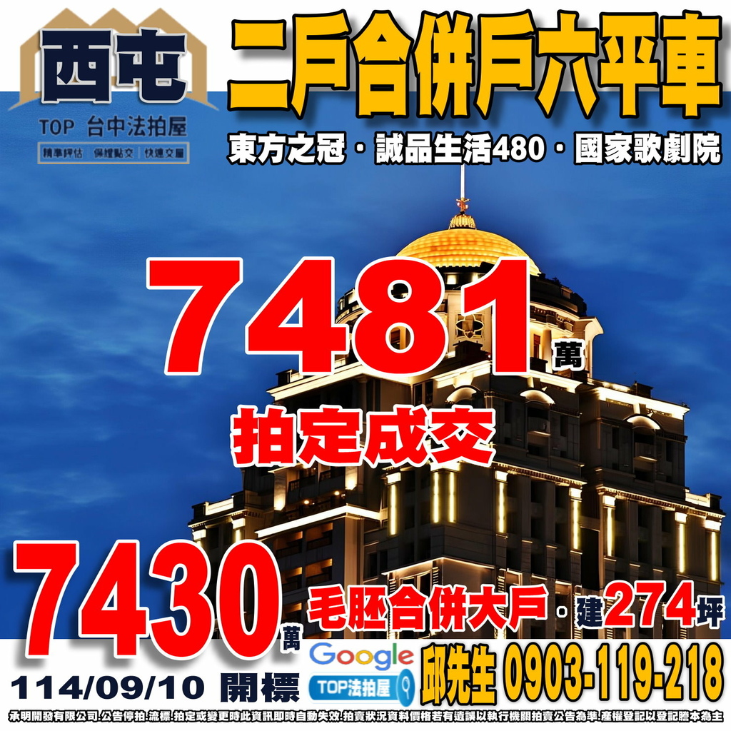 台中法拍屋》二戶合併戶六平車|富宇東方之冠|國家歌劇院