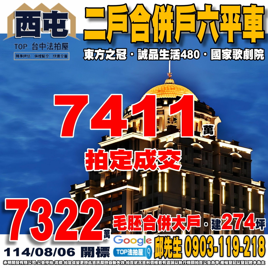 台中法拍屋》二戶合併戶六平車|富宇東方之冠|國家歌劇院