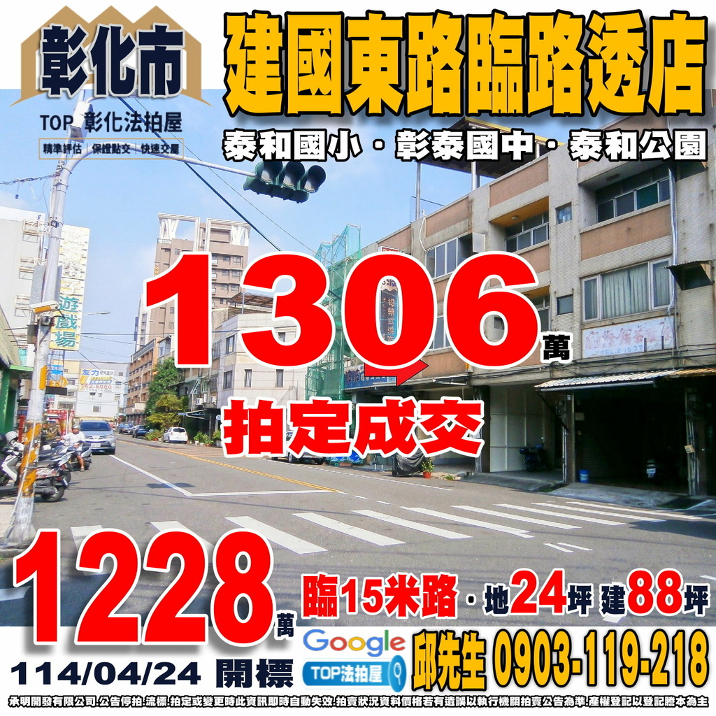 彰化法拍屋》建國東路臨路透店|臨15米路|近泰和國小
