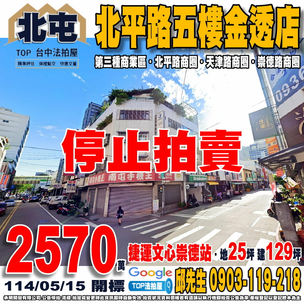 台中法拍屋》北平路五樓金透店|第三種商業區|近捷運文心崇德站