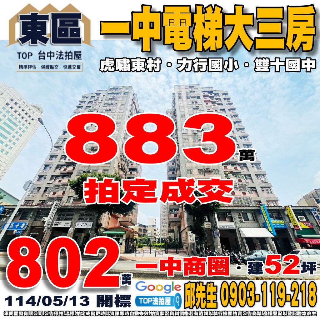 台中法拍屋》一中電梯大三房|虎嘯東村|近力行國小