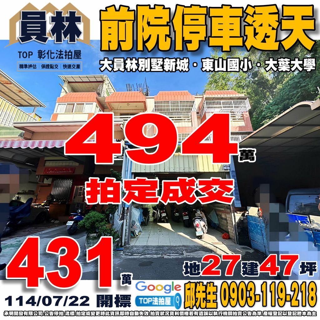 彰化法拍屋》前院停車透天|大員林別墅新城|近東山國小
