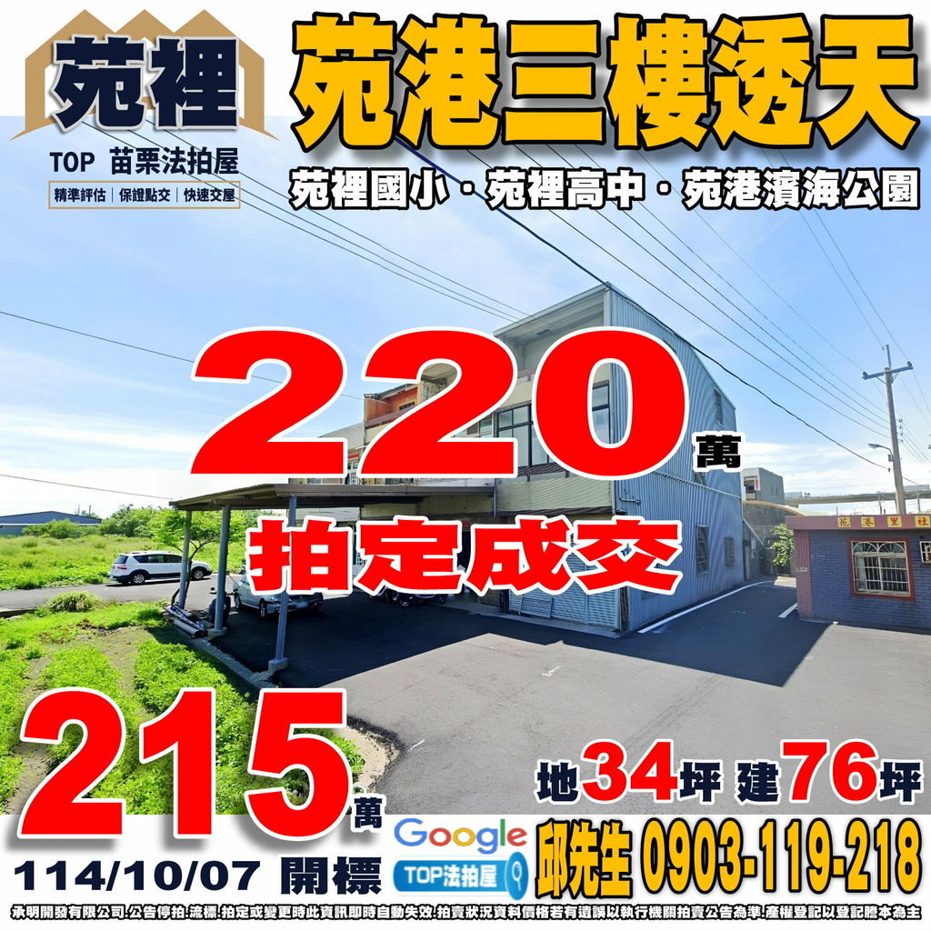 苗栗法拍屋》苑港三樓透天|苑港濱海公園