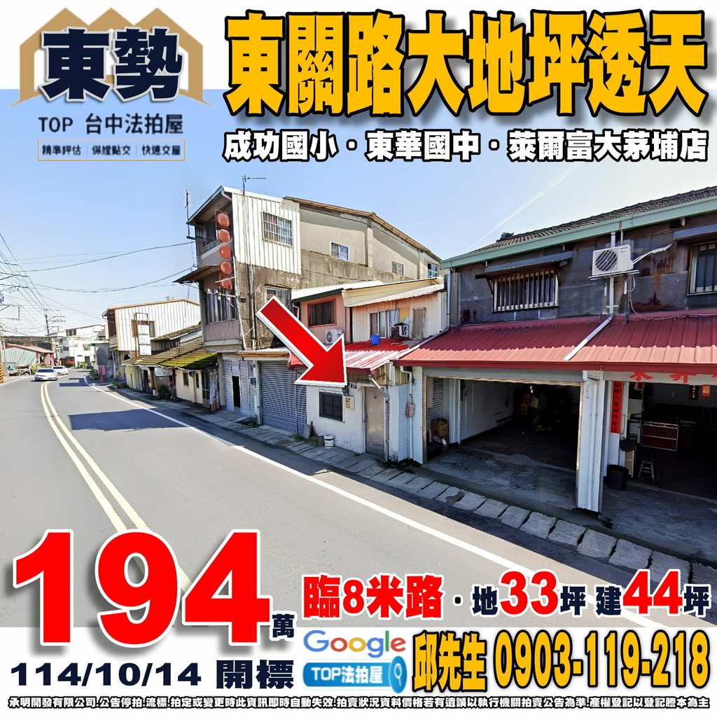 台中法拍屋》東關路大地坪透天|臨8米路|東華國中