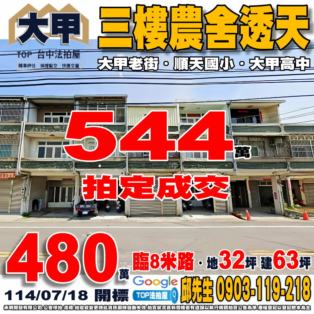台中法拍屋》三樓農舍透天|臨8米路|近順天國小