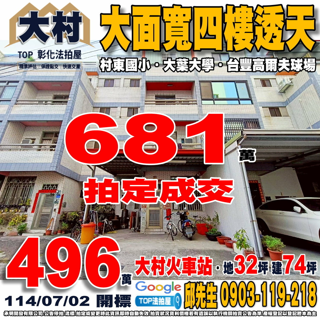 彰化法拍屋》大面寬四樓透天|近村東國小
