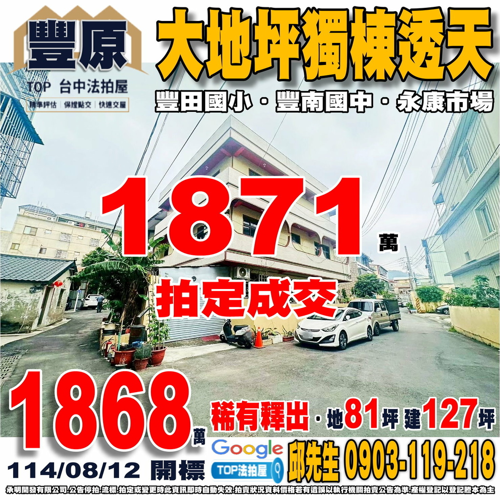 台中法拍屋》大地坪獨棟透天|近豐田國小