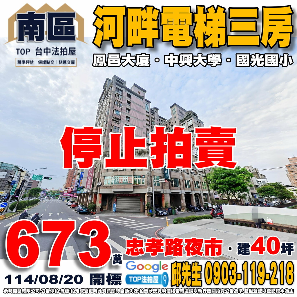 台中法拍屋》河畔電梯三房|鳳邑大廈|近忠孝路夜市