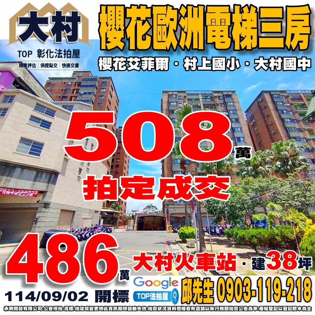 彰化法拍屋》櫻花歐洲電梯三房|櫻花艾菲爾|大村火車站