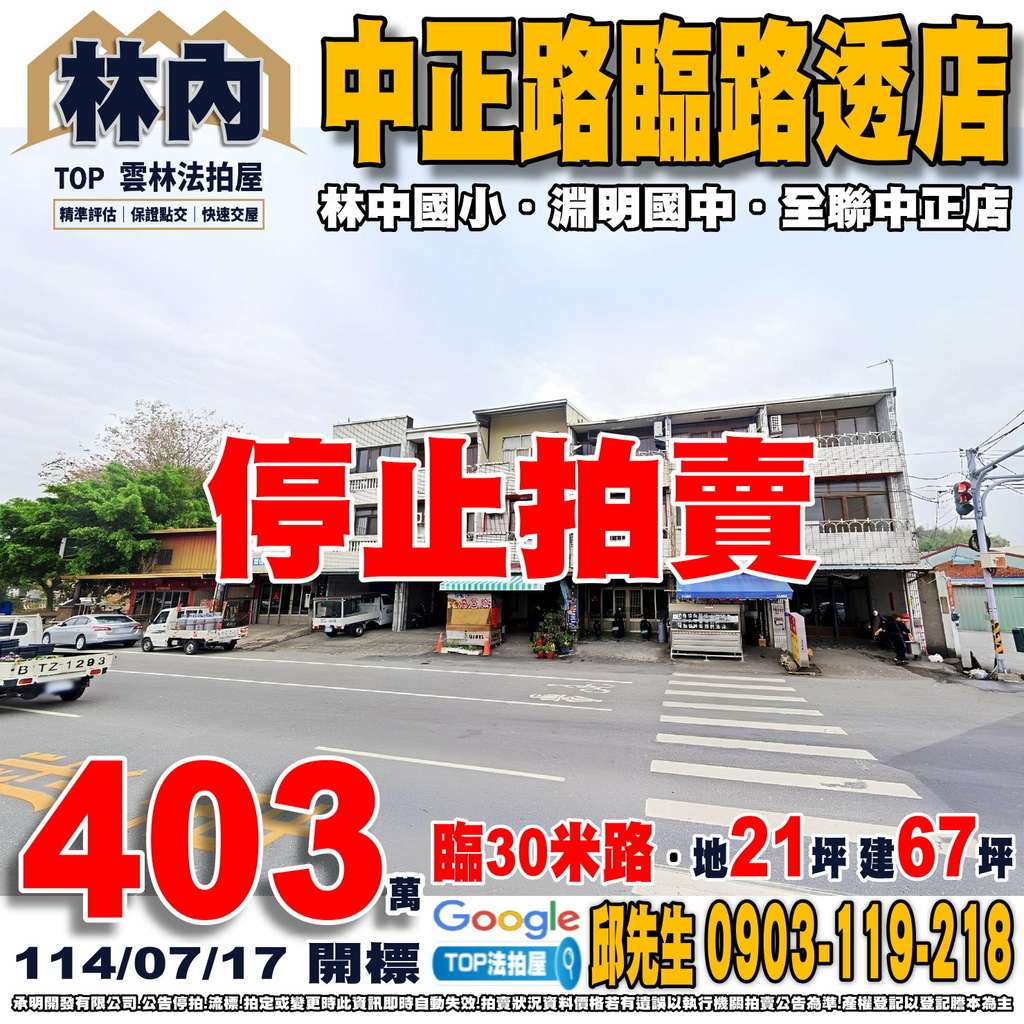 雲林法拍屋》中正路臨路透店|臨30米路|近淵明國中