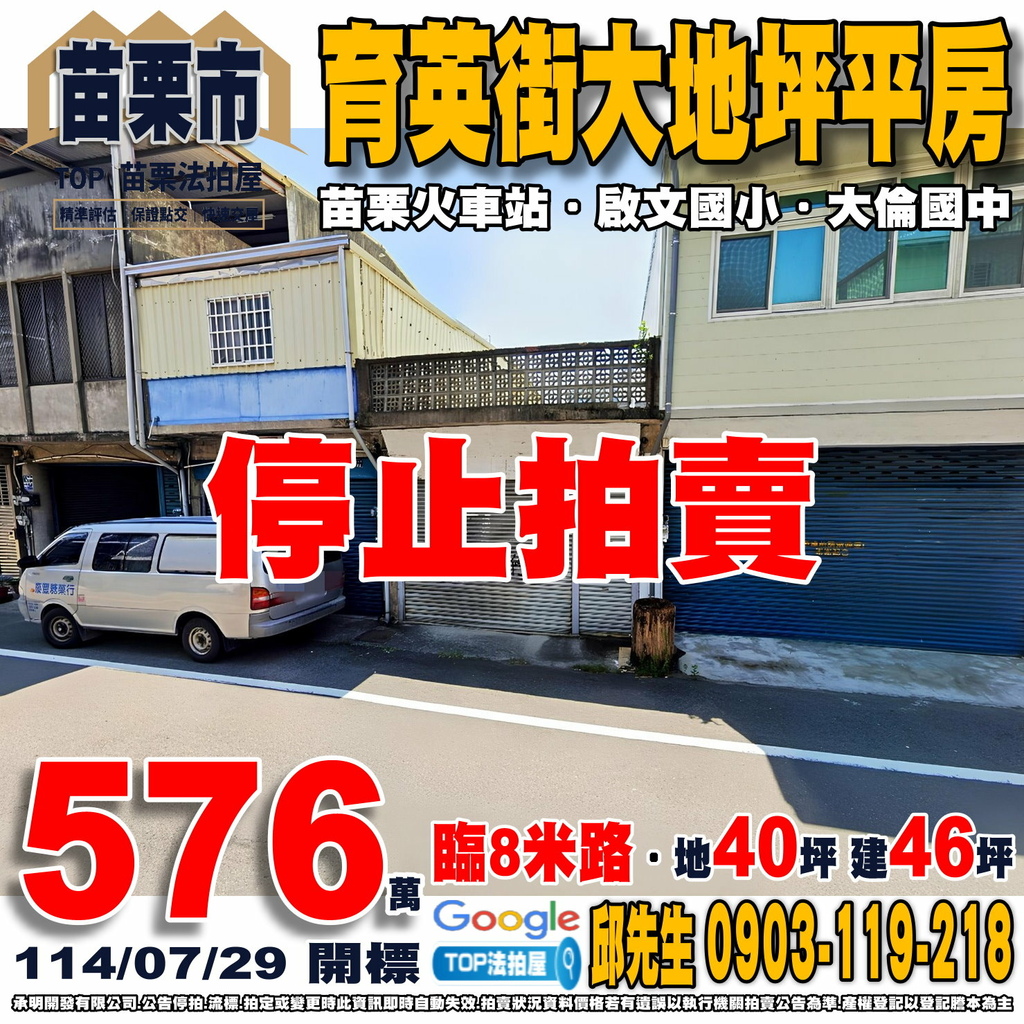 苗栗法拍屋》育英街大地坪平房|臨8米路|近大倫國中