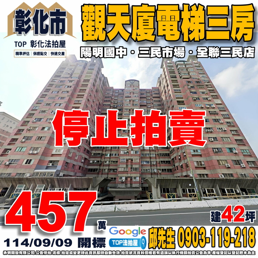 彰化法拍屋》觀天廈電梯三房|陽明觀天廈|陽明國中
