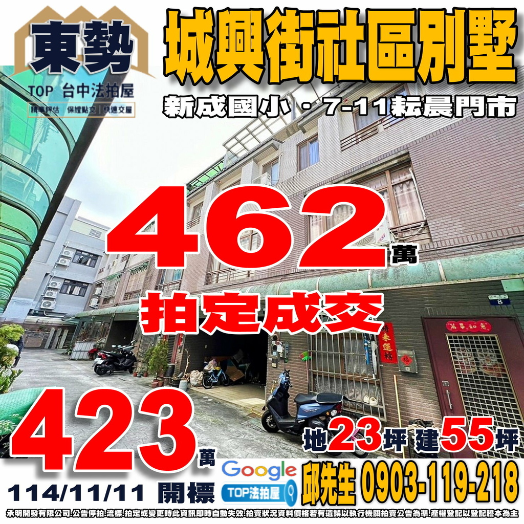 台中法拍屋》城興街社區別墅|新成國小