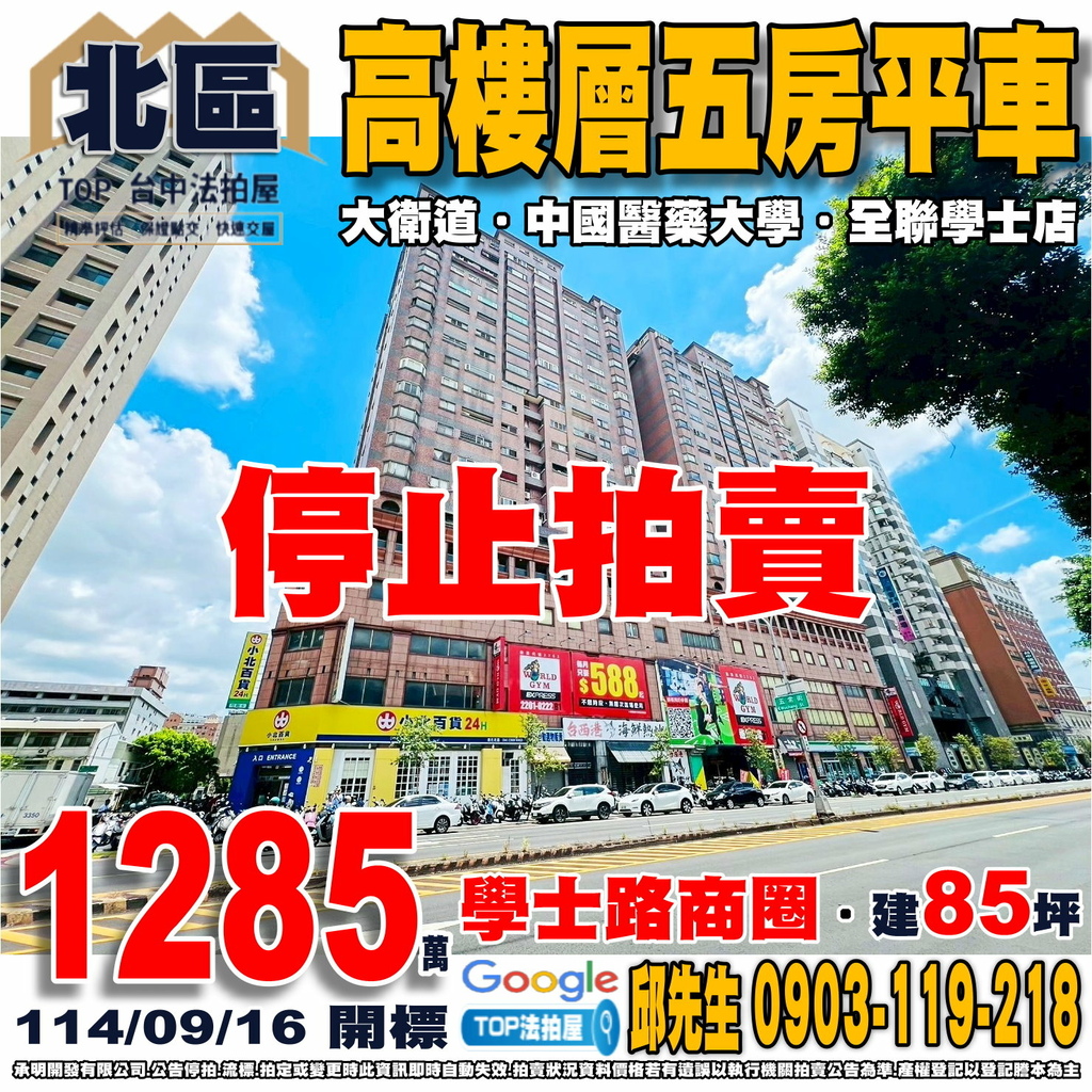 台中法拍屋》高樓層五房平車|大衛道|中國醫藥大學