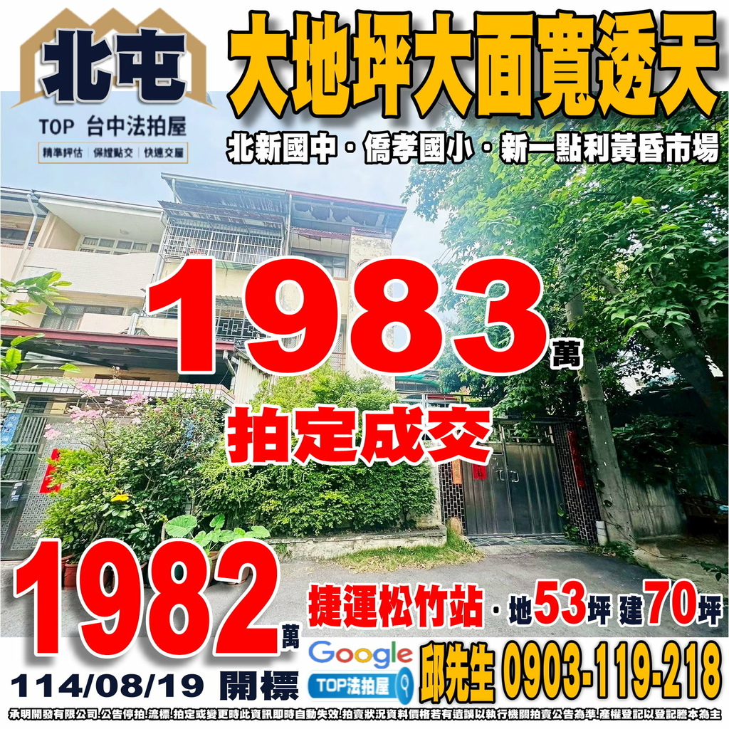 台中法拍屋》大地坪大面寬透天|近北新國中