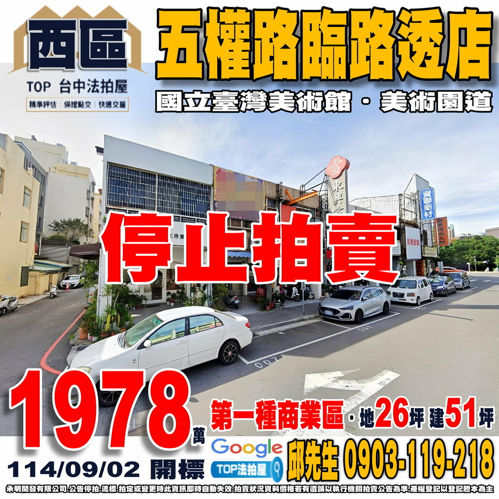台中法拍屋》五權路臨路透店|第一種商業區|國立臺灣美術館