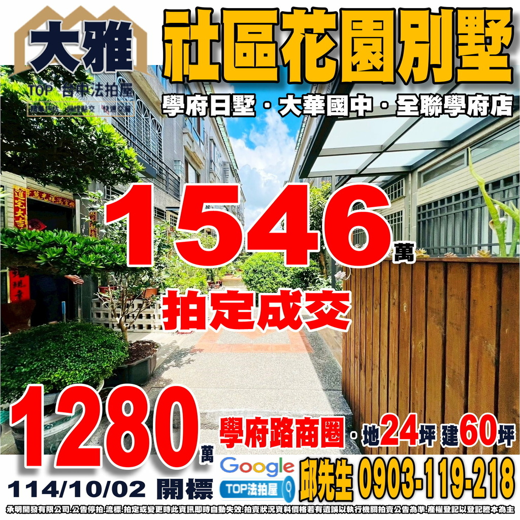 台中法拍屋》社區花園別墅|學府日墅|大華國中
