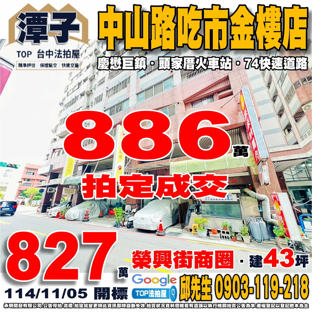 台中法拍屋》中山路吃市金樓店|慶懋巨鎮|榮興街商圈