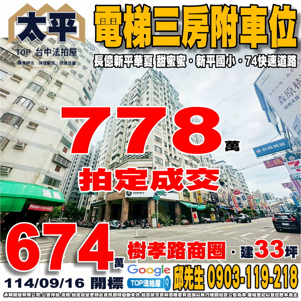 台中法拍屋》電梯三房附車位|長億新平華廈 甜蜜蜜|新平國小