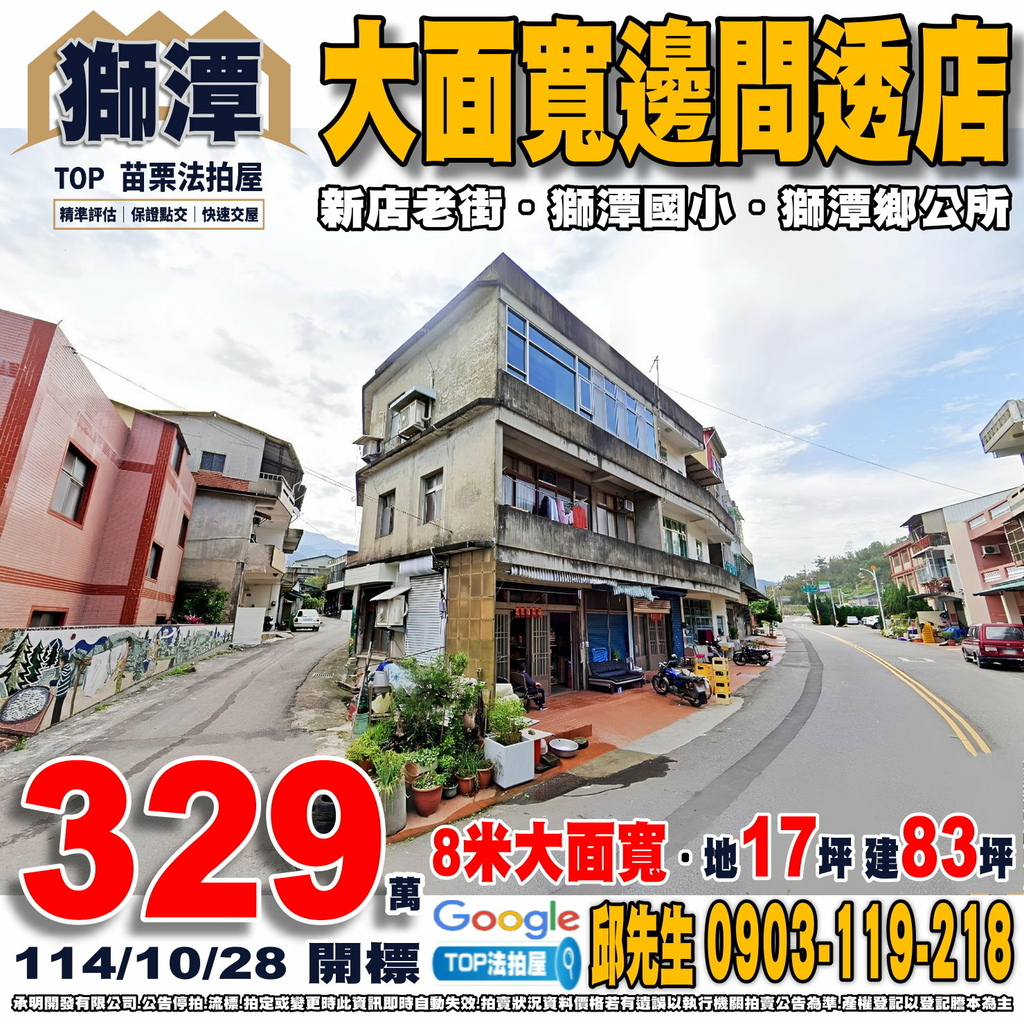 苗栗法拍屋》大面寬邊間透店|獅潭國小