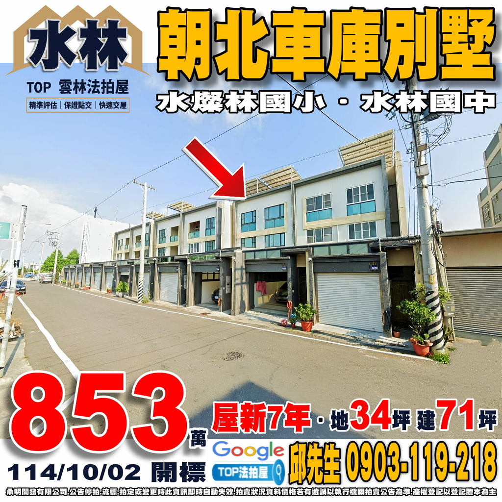 雲林法拍屋》朝北車庫別墅|屋新7年|水林國中