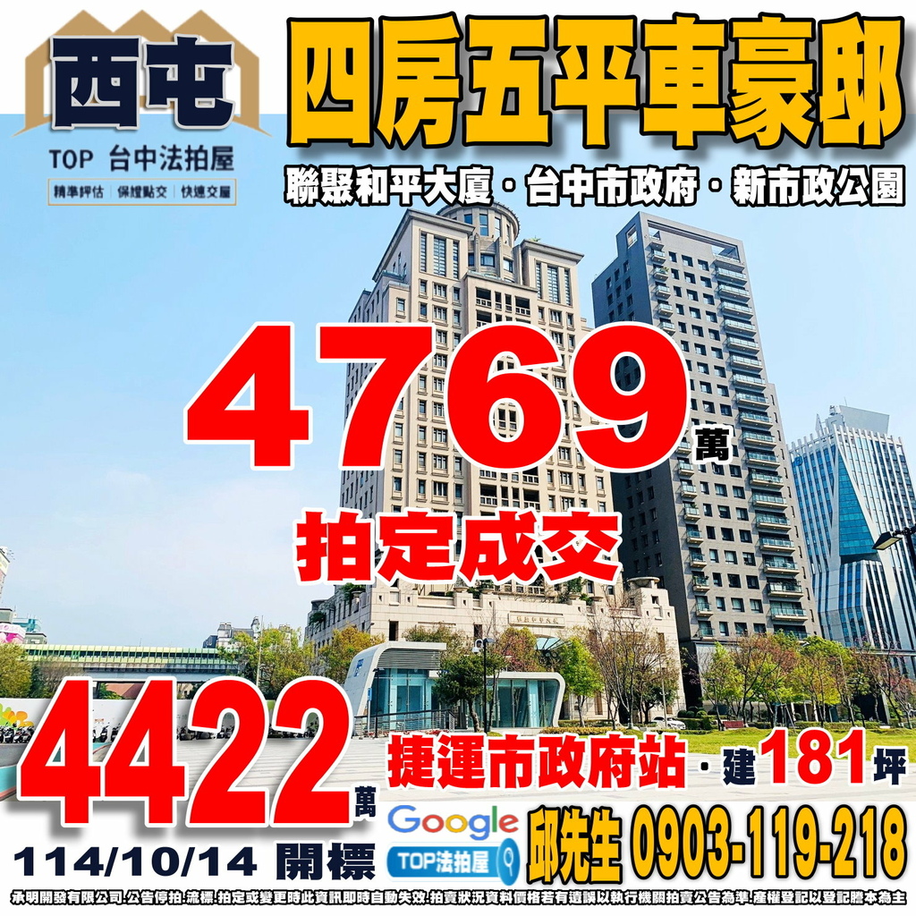 台中法拍屋》四房五平車豪邸|聯聚和平大廈|新市政公園
