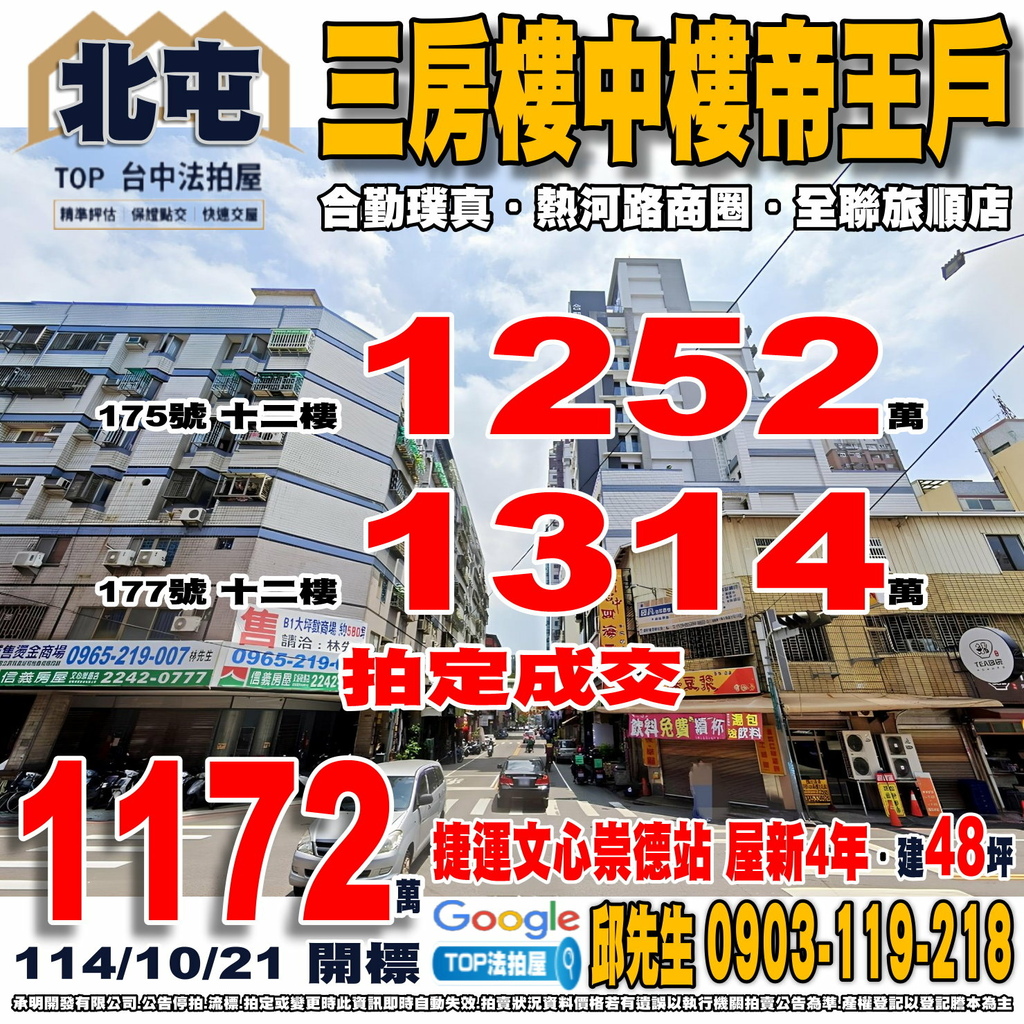 台中法拍屋》三房樓中樓帝王戶|合勤璞真|二戶可選|捷運文心崇德站