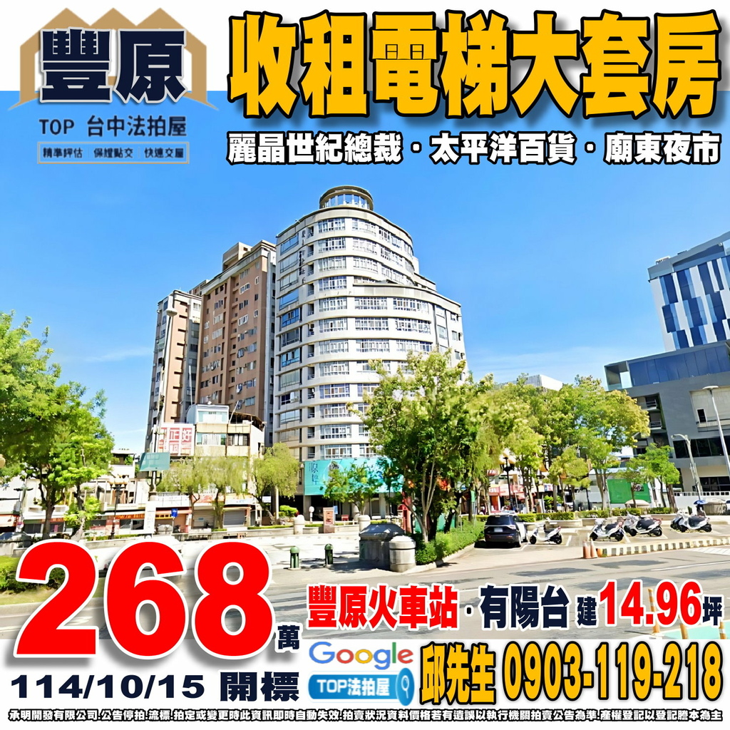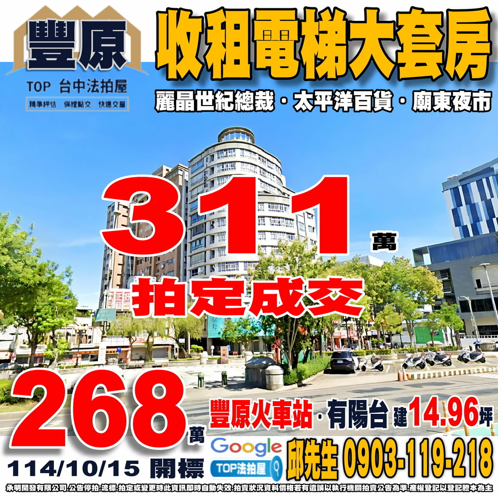 台中法拍屋》收租電梯大套房|麗晶世紀總裁|豐原火車站