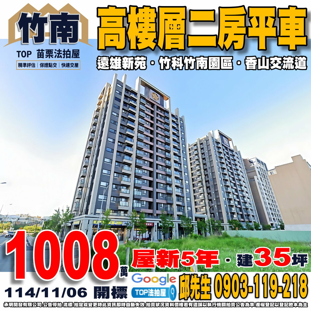 苗栗法拍屋》高樓層二房平車|遠雄新苑|屋新5年|竹科竹南園區