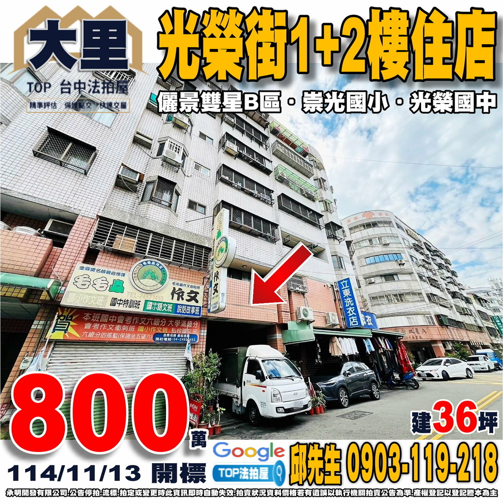 台中法拍屋》光榮街1+2樓住店|儷景雙星B區|光榮國中