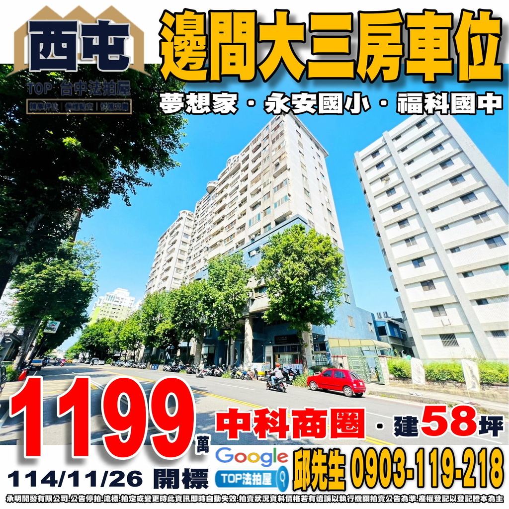 台中法拍屋》邊間大三房車位|夢想家|中科商圈|福科國中