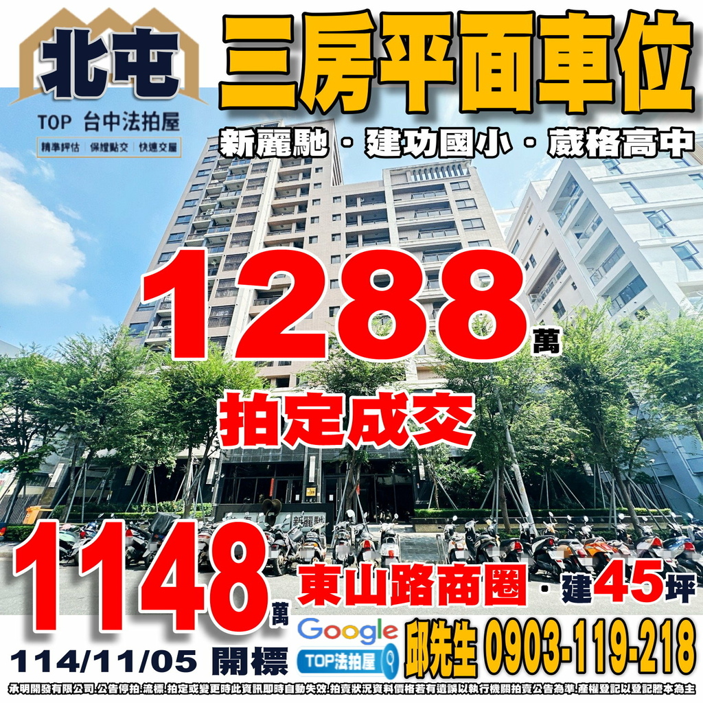台中法拍屋》三房平面車位|新麗馳|東山路商圈|建功國小