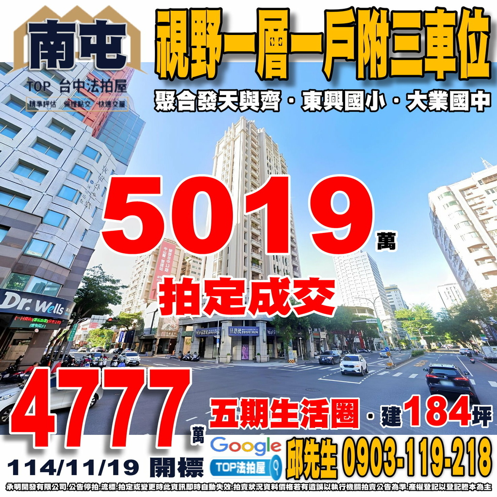 台中法拍屋》視野一層一戶附三車位|聚合發天與齊|五期生活圈