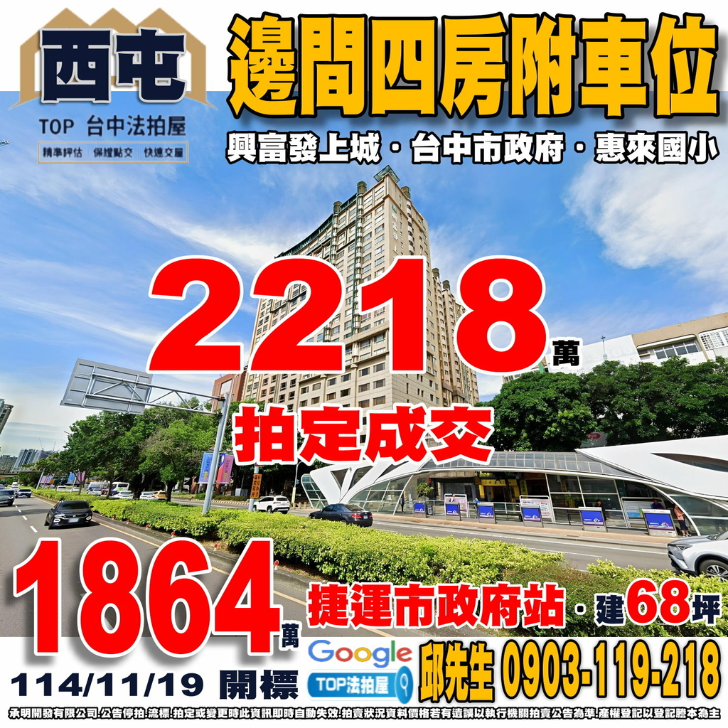 台中法拍屋》邊間四房附車位|興富發上城|捷運市政府站