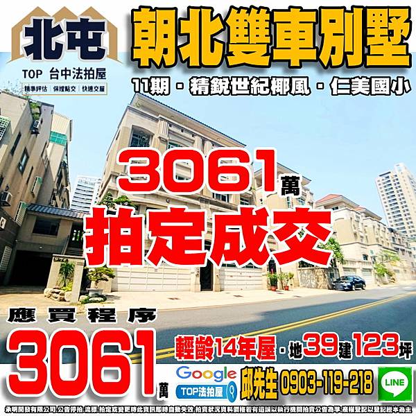 台中法拍屋》朝北雙車別墅|精銳世紀椰風|近仁美國小