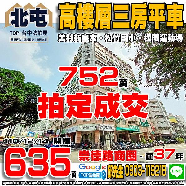 台中法拍屋》高樓層三房平車|美村新皇家|近松竹國小
