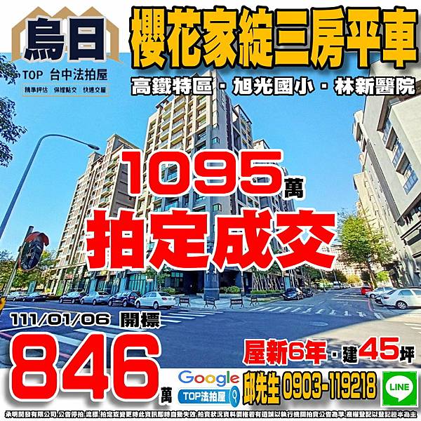 台中法拍屋》櫻花家綻三房平車|屋新6年|高鐵特區|近旭光國小