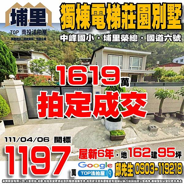 1110406 南投縣埔里鎮榮光路12號 獨棟電梯莊園別墅 中峰國小 埔里榮總 國道六號 TOP法拍屋 承明法拍屋