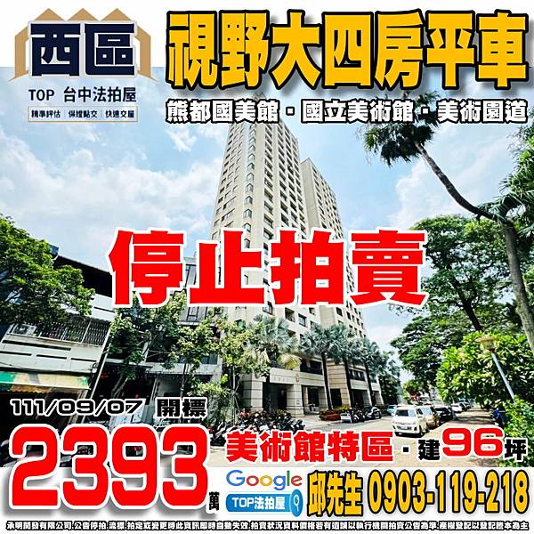台中法拍屋》視野大四房平車|熊都國美館|美術園道旁