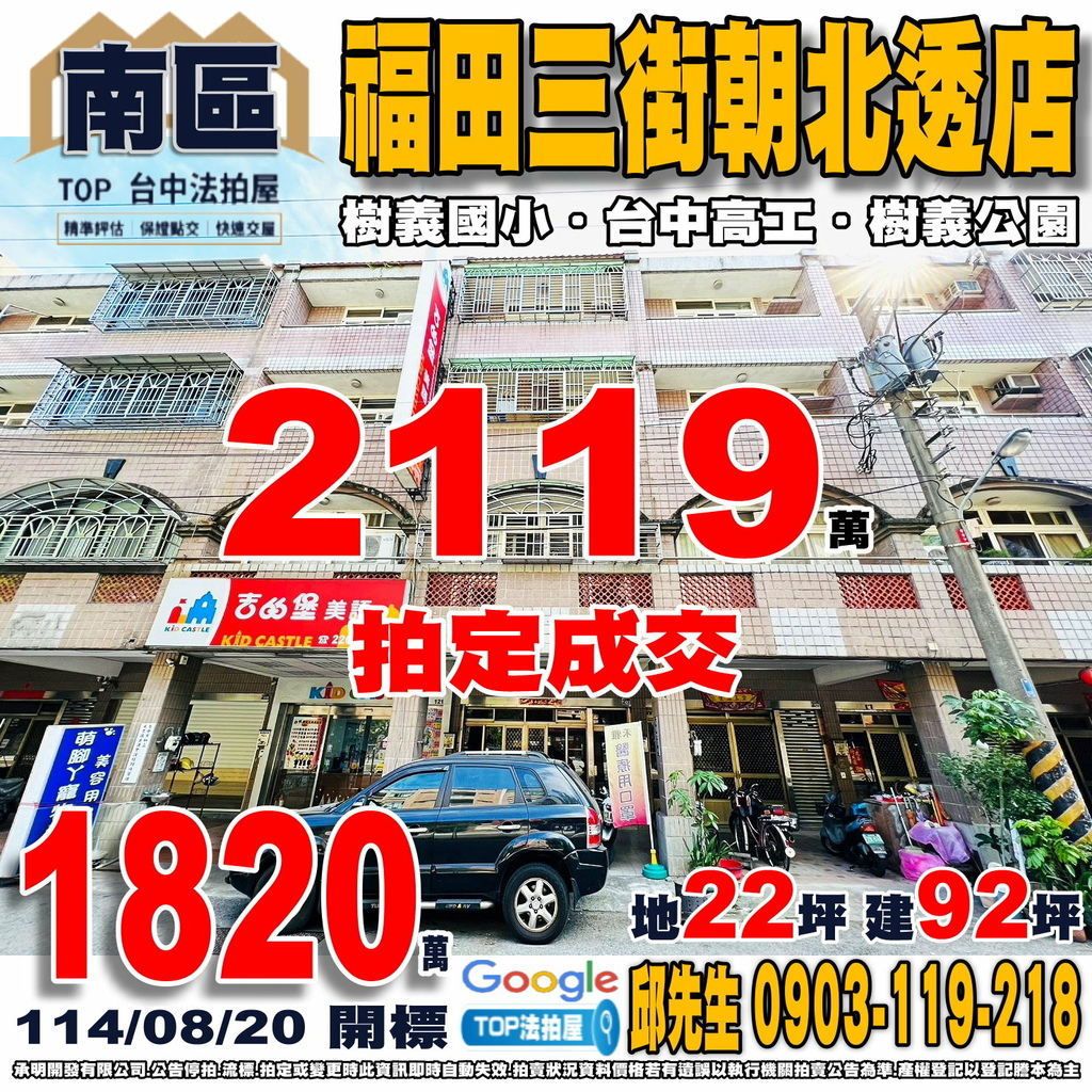 台中法拍屋》福田三街朝北透店|近樹義國小